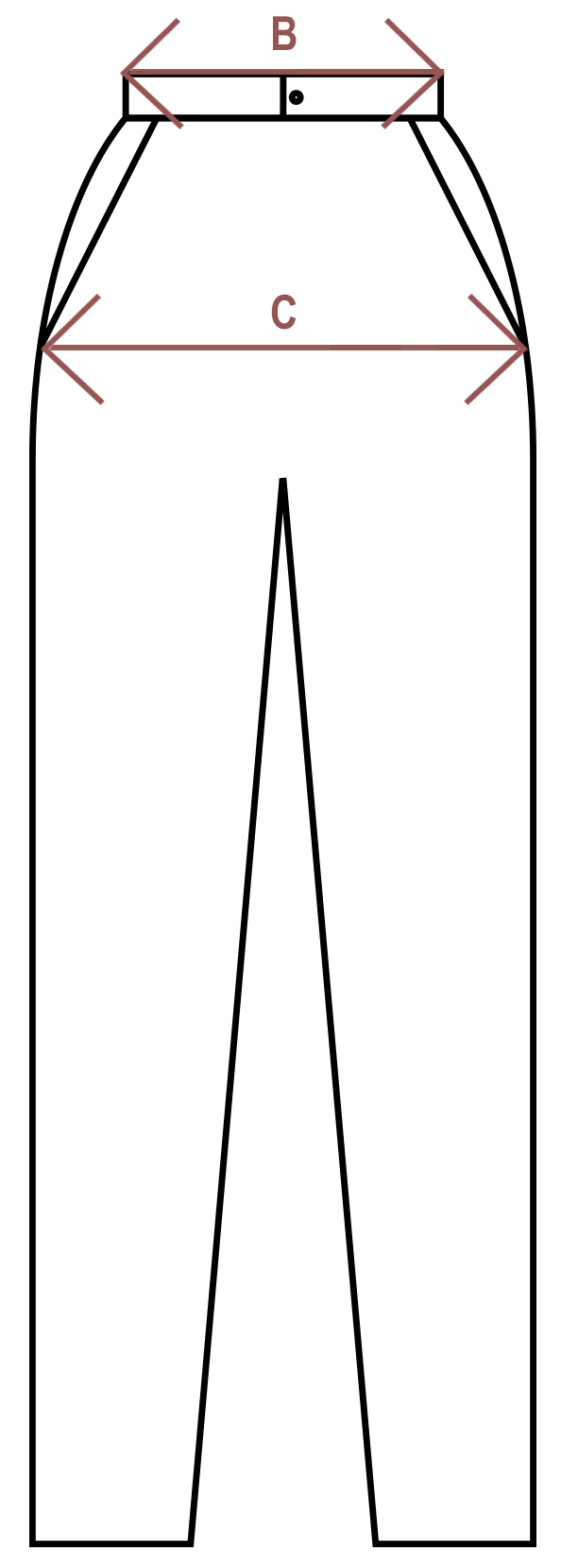 A nadrágon oldalt zsebek találhatók, a derékrészt elöl hajtások díszítik. A nadrág aranyszínű húzózárral és gombbal záródik, a nadrágszár bokánál felsliccelt.