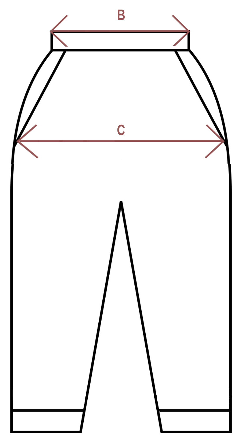 Egyenes vonalú, lefelé kissé szűkülő, gumis derekú lány nadrág, oldalán zsebbel. A nadrág elejét a derékrésznél egy-egy hajtás és ál húzózár díszíti. A nadrág elülső része nem gumizott, egyenesen kisimul. A nadrágszár igény szerint felhajtható.