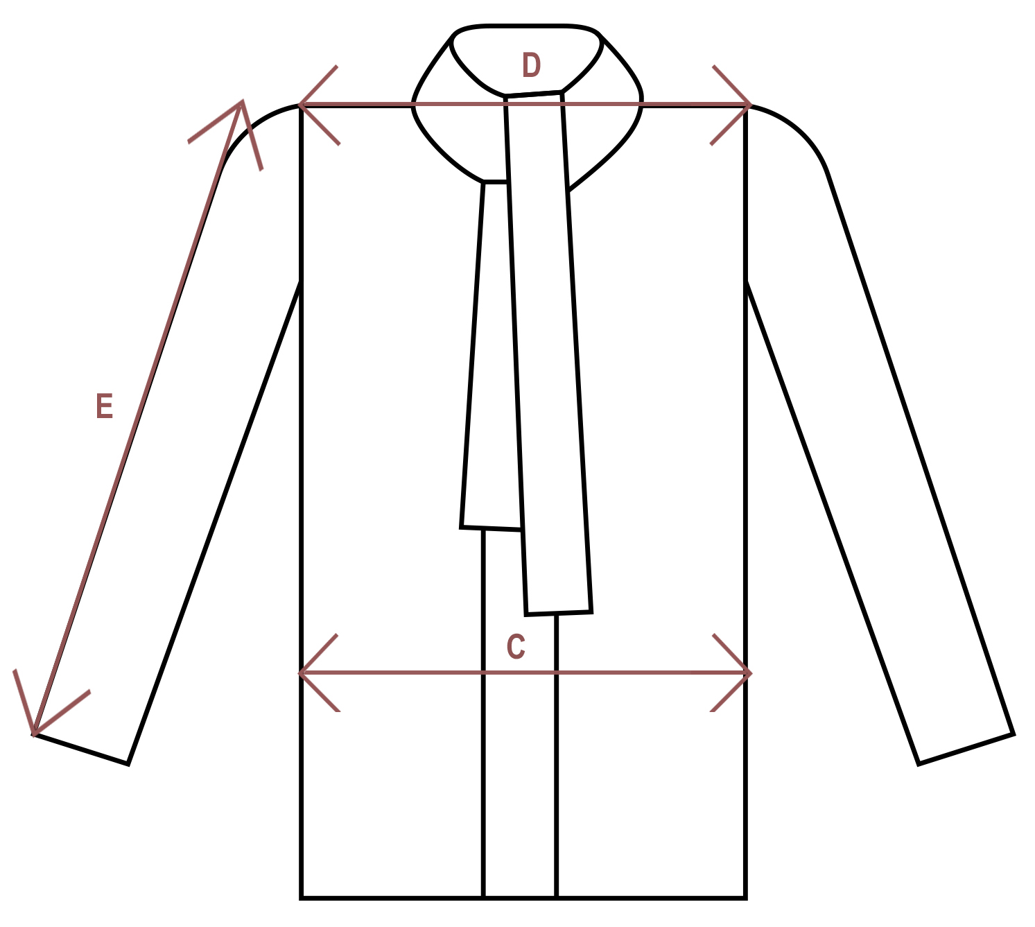 A kabát álló gallérja elöl hosszabbra hagyott sálszerű résszel rendelkezik, mely igény szerint megköthető.