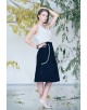 Raglán szabású, egyenes nyakkivágással rendelkező, 3/4-es ujjú, csípőig érő blúz. A blúz elejét a nyakkivágással párhuzamos pié csíkok díszítik. A buggyos ujjrészt a két színű pliszírozott anyagból szabott csíkok teszik különlegessé.Címzett :
