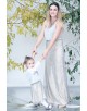 A-vonalú, térdig érő, hosszú újjú blúz. A blúz, az ujjrészt kivéve két réteg muszlinból készült. Az alsó kék muszlin réteg hosszabbra hagyott, kilátszik az ekrü színű felső réteg alól. A hosszított fazonú blúz, különálló kis ruhaként is funkcionál.Címzett :